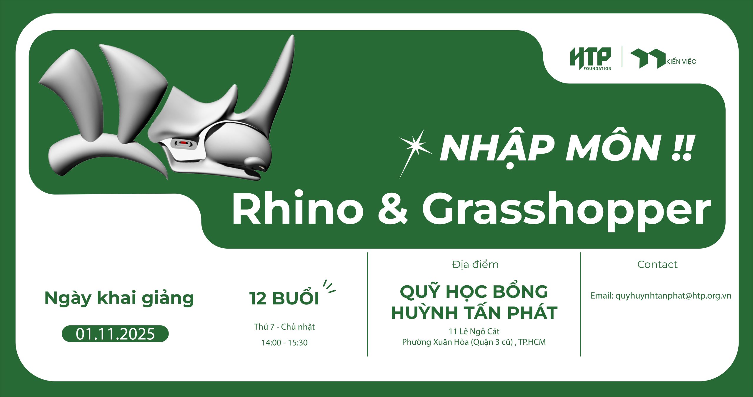 Rhino và Grasshopper Foundation ra đời như một câu trả lời cho khoảng trống đó: một khóa học giúp người học xây dựng nền tảng kỹ thuật vững chắc, hiểu bản chất của mô hình 3D, nắm được quy chuẩn trình bày, và từ đó nâng cao năng lực giao tiếp bằng ngôn ngữ thiết kế.